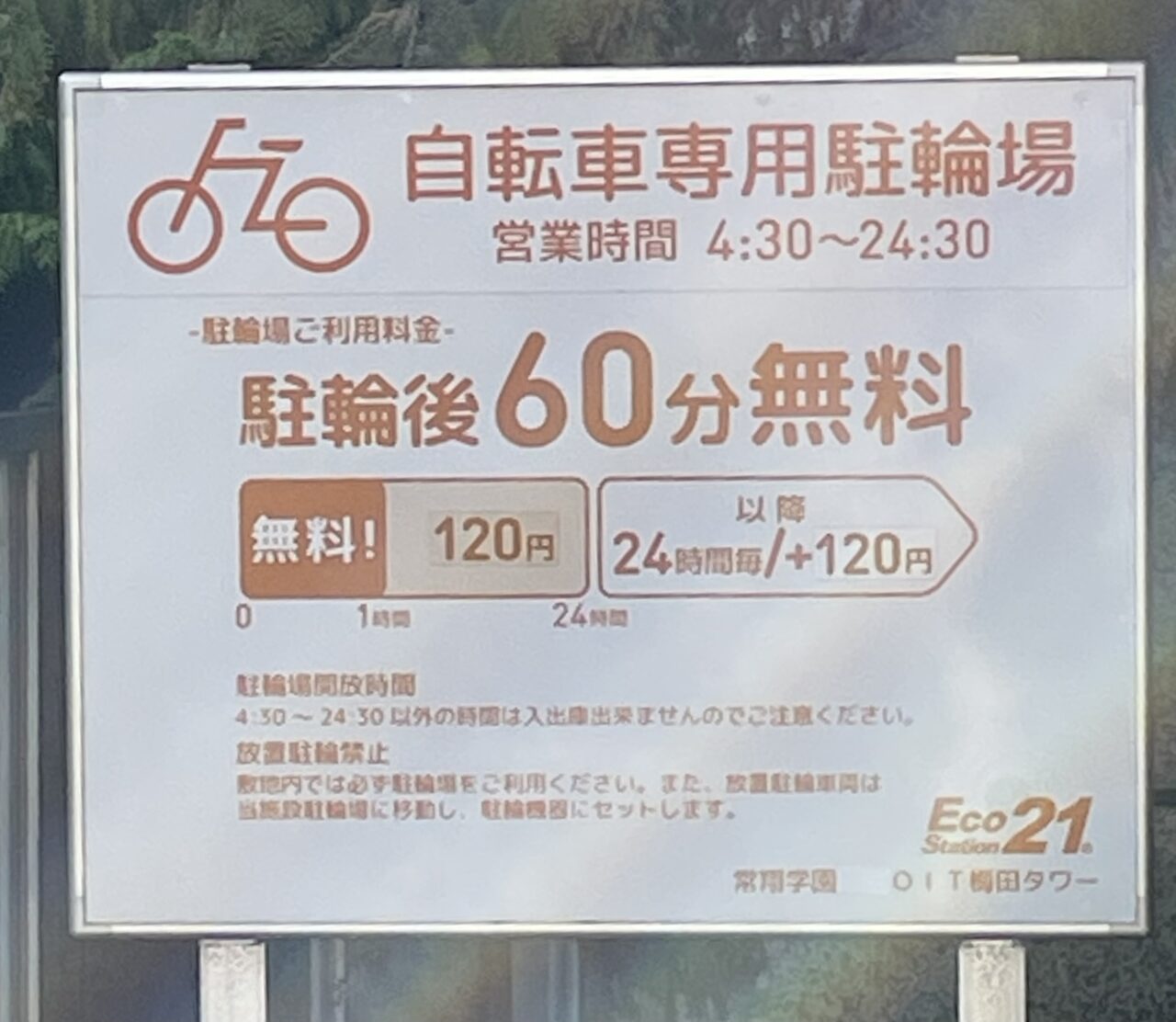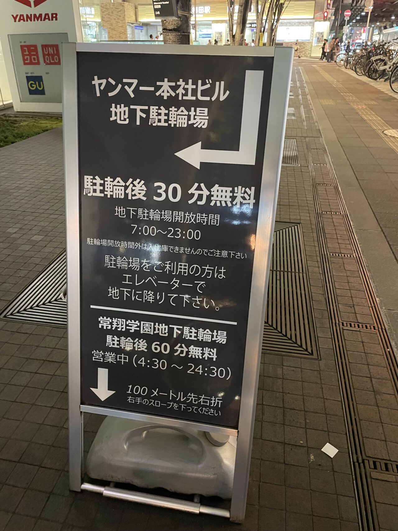 無料時間が長いのは【常翔学園うめだタワーの地下駐輪場】