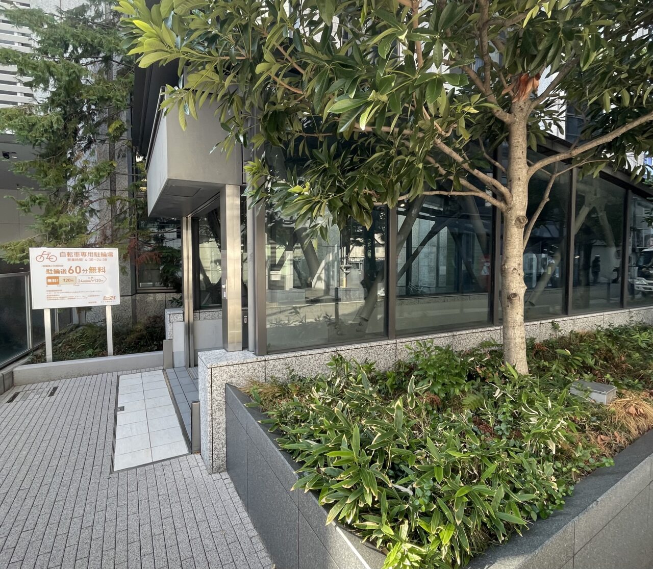地上駐輪場の後方にあるのが、かつてユニクロやGUが入っていたヤンマー本社ビル。
